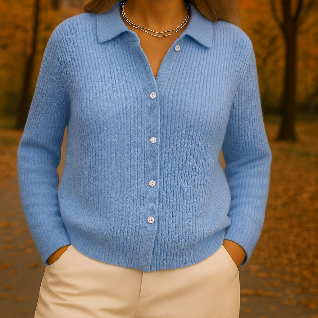 Elin är en mjuk och stilren kofta som lyfter varje outfit med sin lugna, eleganta form. Den följsamma känslan och diskreta passformen gör den lika självklar till jeans som till kjol eller klänning.