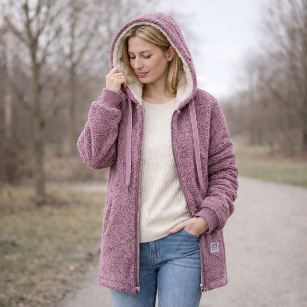 Fleecefodret känns bekvämt mot huden, kliar inte och håller dig behagligt varm under hela dagen. Tack vare huvan och den lätta konstruktionen är jackan idealisk för dagligt bruk, både under promenader och när du är på språng.