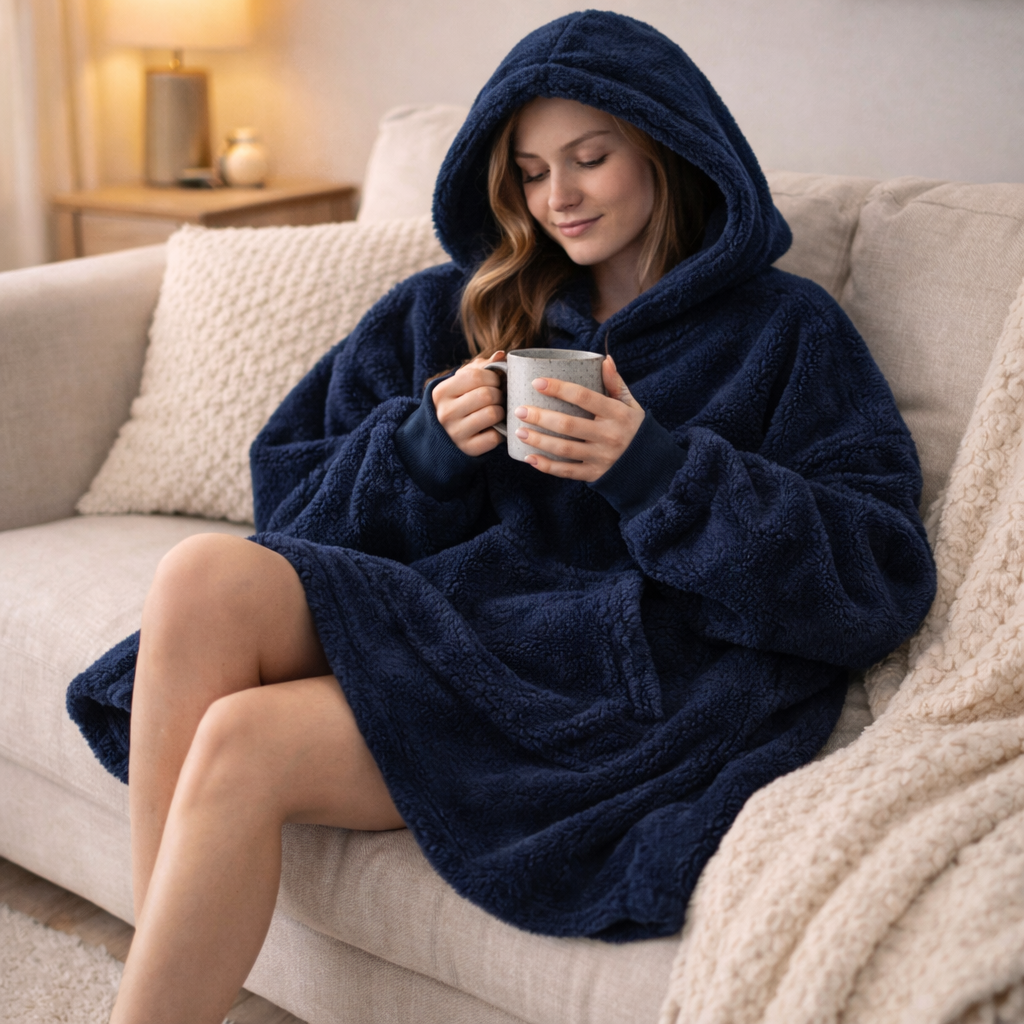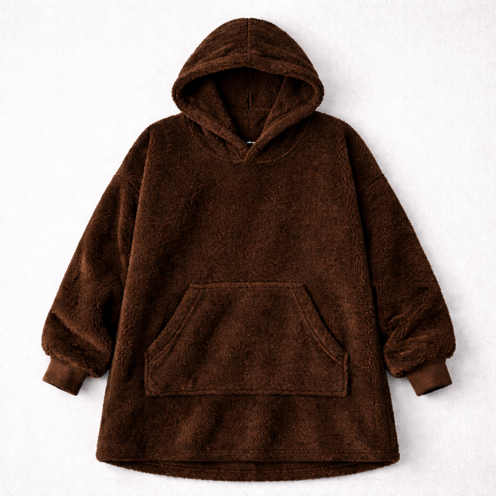 En bekväm fleecefodrad hoodie som ger en varm och avslappnad känsla hemma.