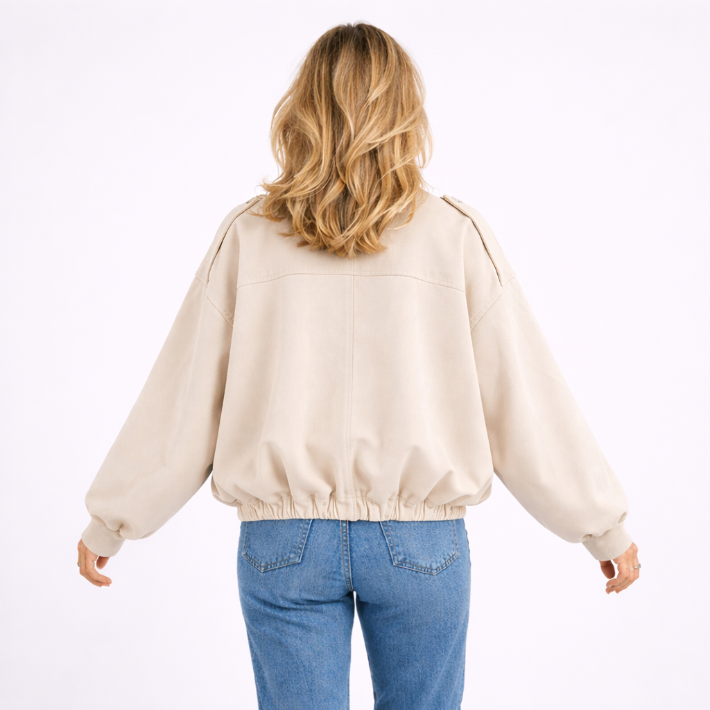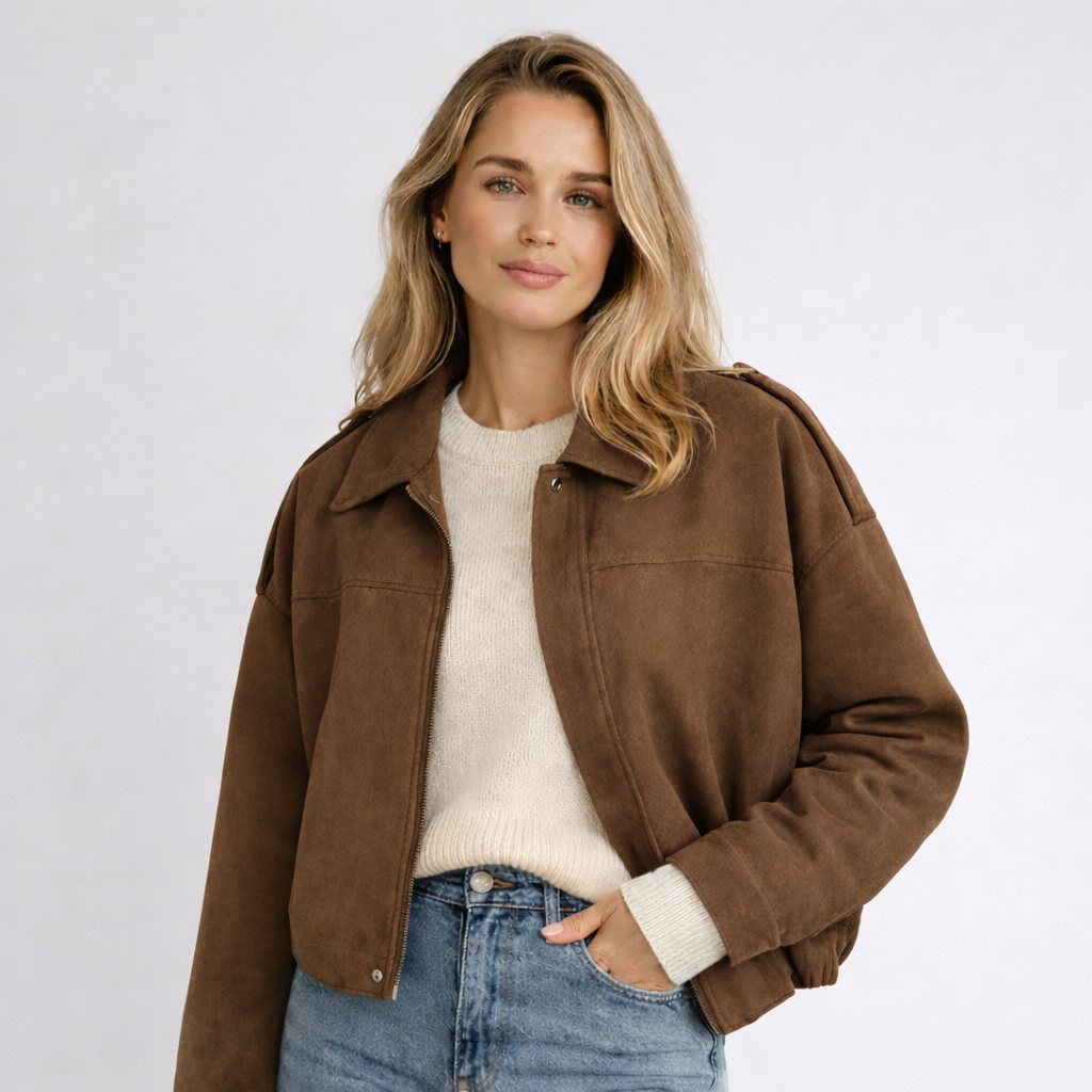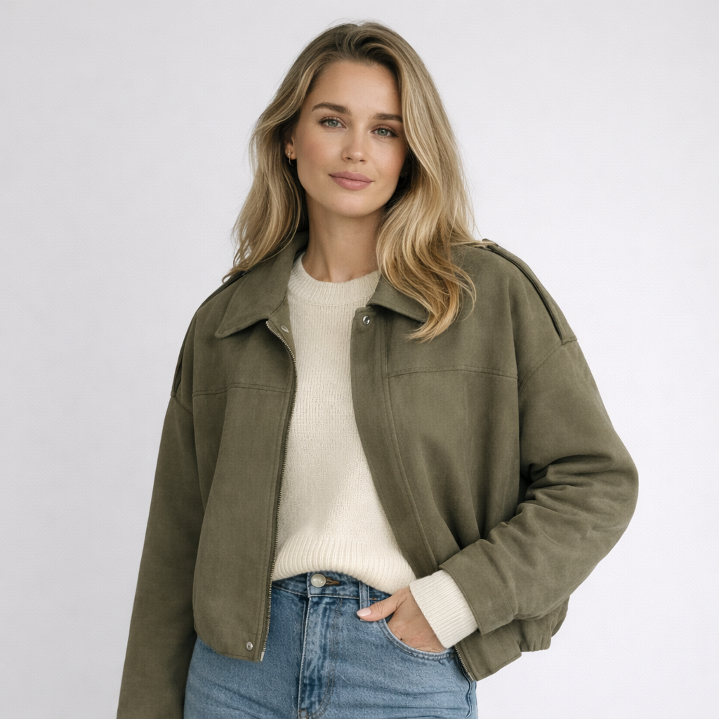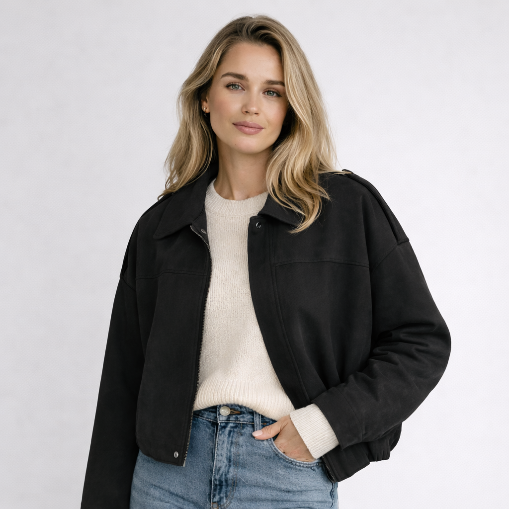 Nova, Bomberjacka är en modern essential för våren. Det mjuka materialet har en exklusiv, mockaliknande känsla och ger ett stilrent uttryck under kyliga morgnar – utan att kännas tung eller vinterlik.