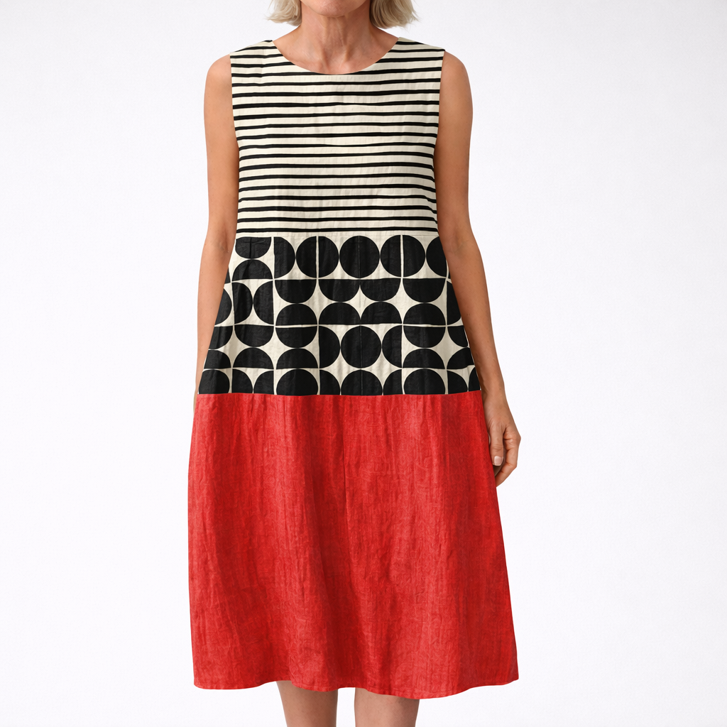 Det lätta och luftiga tyget gör klänningen behaglig att bära även under varmare dagar. Den luftiga silhuetten ger god rörelsefrihet och gör att du känner dig bekväm oavsett om du är ute på en promenad, träffar vänner eller njuter av en lugn dag.