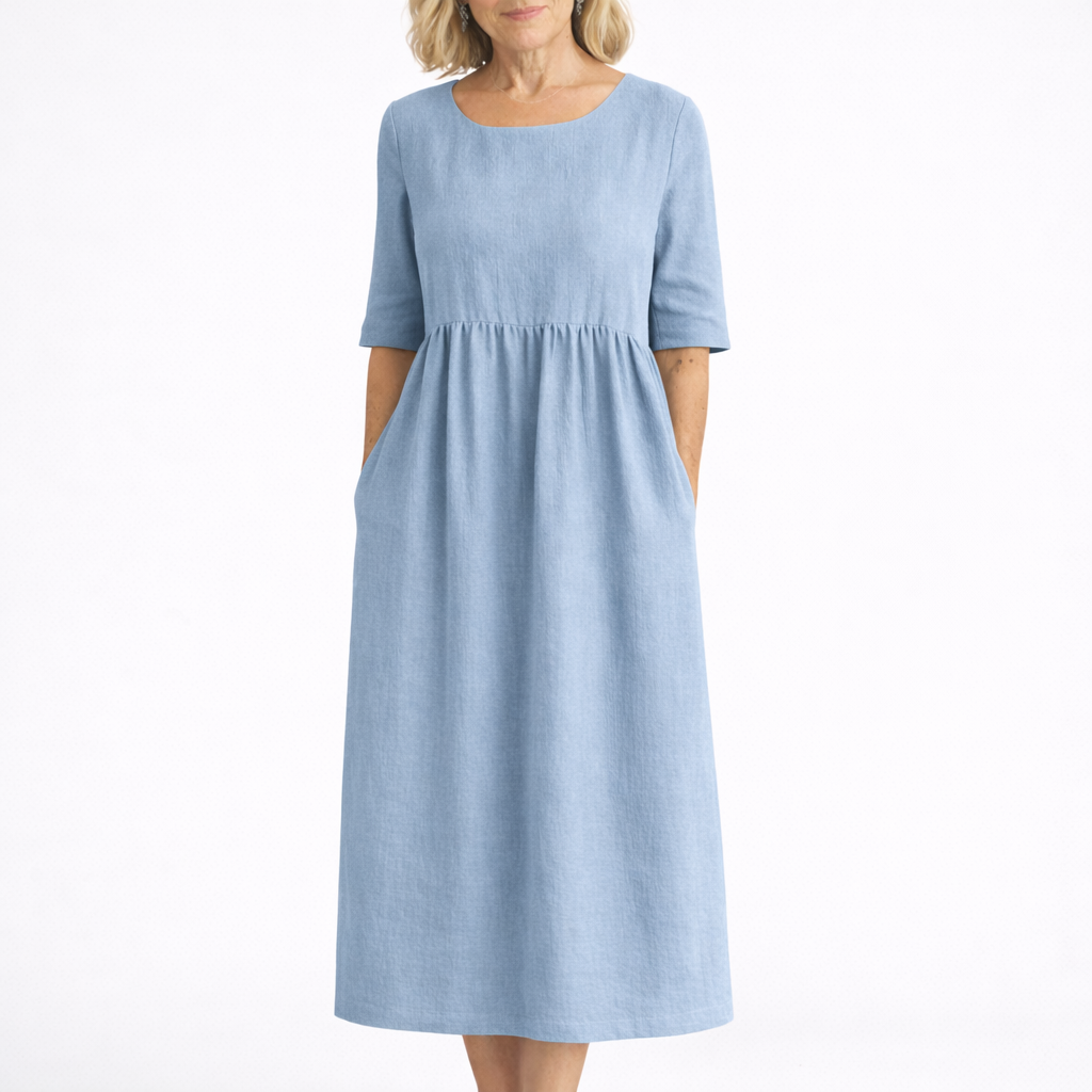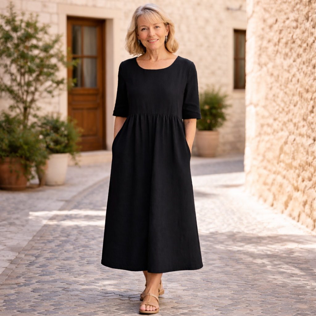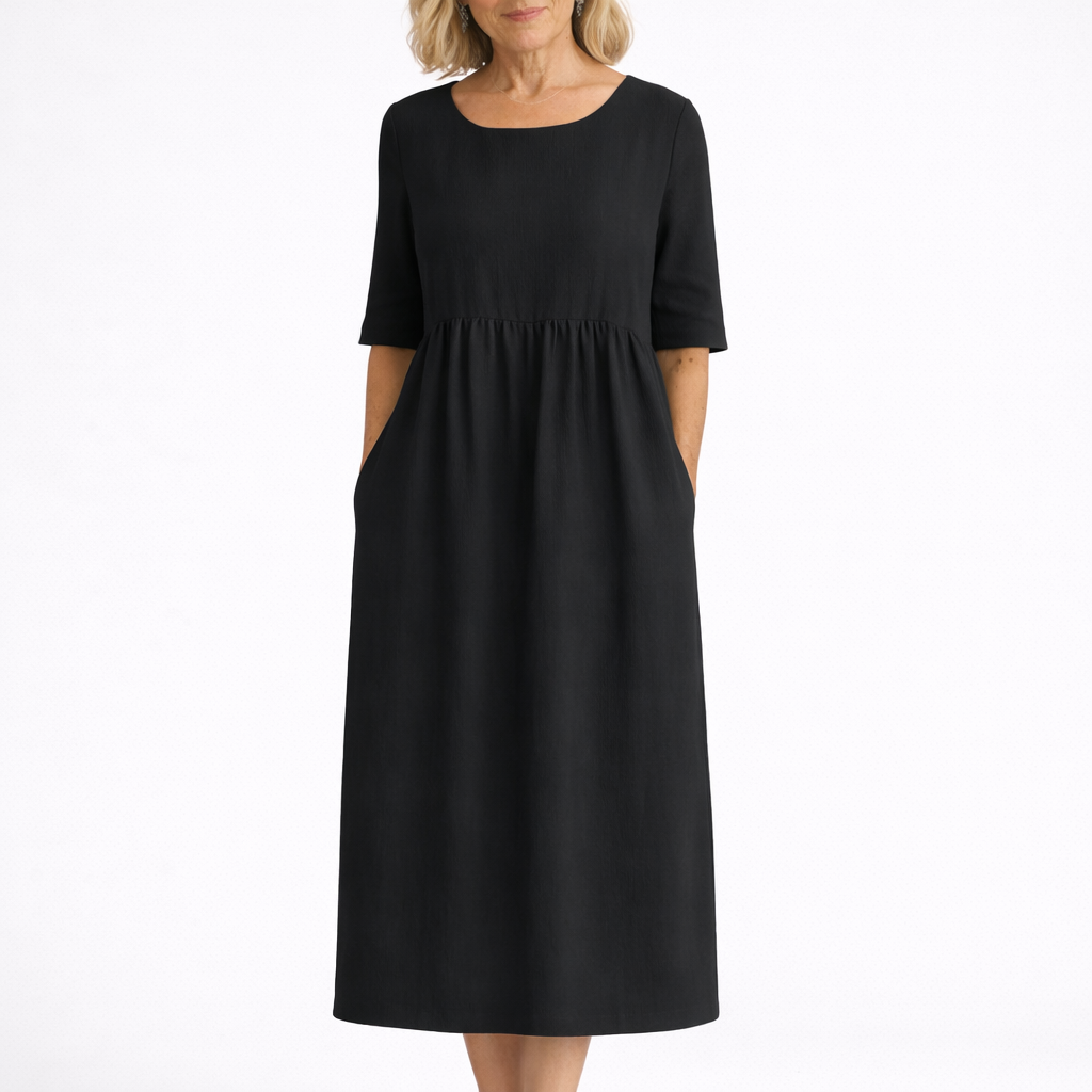 Yvonne är en klänning för kvinnor som vill känna sig bekväma och välklädda varje dag. Den stilrena designen ger ett lugnt och elegant uttryck som passar perfekt både till vardag och somriga tillfällen.