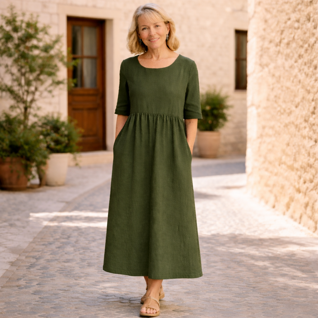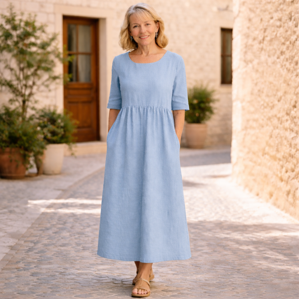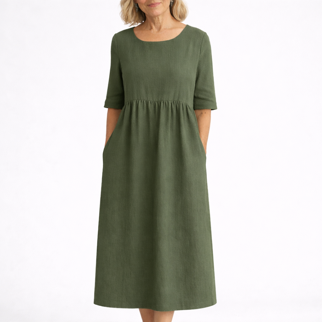 Yvonne är en klänning för kvinnor som vill känna sig bekväma och välklädda varje dag. Den stilrena designen ger ett lugnt och elegant uttryck som passar perfekt både till vardag och somriga tillfällen.